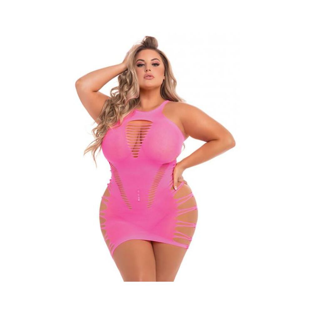 Back 2 Basixxx High Neck Dress Pink 1X/3X