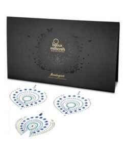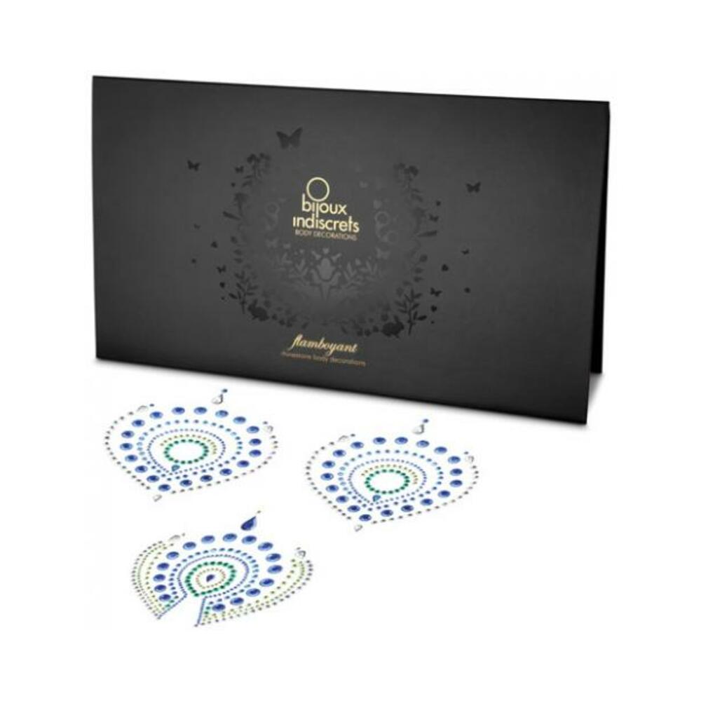 Our body is beautiful and we need to cherish it! Celebrate your naked skin with Flamboyant’s beautiful shapes inspired by the peacock feathers. If clothes are optional your body will become a true jewel and if you wish to, combine it with your finest lingerie for unlimited seduction.Content: self-adhesive rhinestone body decorations. Blue and green. By Bijoux Indiscrets.