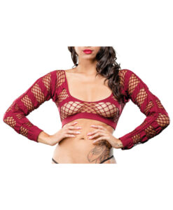Burgundy horizontal stripes fishnet/mesh crotchless legging Can also be worn as a crop top One size fits most 92% Nylon 8% Spandex Hand wash Drip dry @vday2020-70