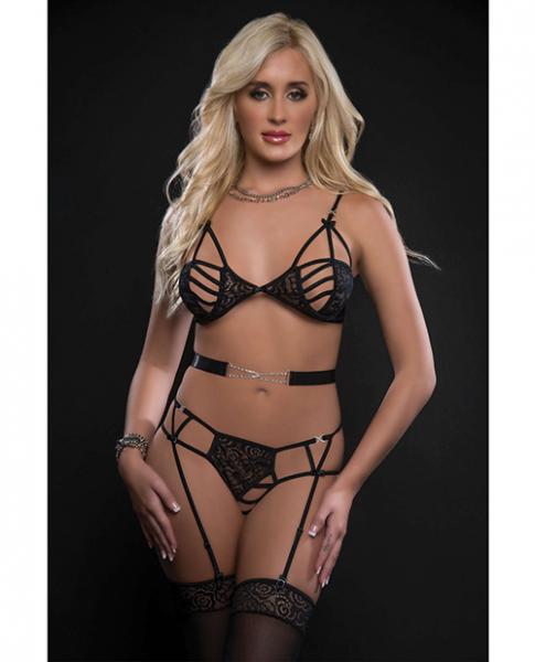 Caged Wired Bra, Garter Panty & Stockings Blackout O/s