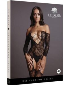 Suspender bodystocking with lace-pattern and deep-V neckline with crossed straps detail. Can be worn on or off-shoulder. This bodystocking has some stretch and can be worn from size S to L. * Fabric stretches four ways and forms on your body. * Easy-fit * Stretchy * Affordable * Crossed straps neckline * 1/2 sleeves