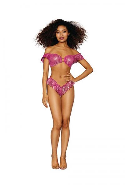 Gold Foil Lace Bralette and Panty Set Azalea Gold O/S from Dreamgirl International Lingerie. Gold Foiled Lace Bralette and Panty Set Gold foil, stretch lace bralette and panty set features cute ruffle shoulder straps that can be worn off the shoulder. Center heart detail. Matching flutter panty included. One size ladies Ladies size, one size. Ladies sizes 2 to 14. Cups B/C. Weighing 90 pounds to 160 pounds. Bust 32 inches to 38 inches. Waist 24 inches to 31 inches. Hips 34 inches to 40 inches. Care hand wash in cold water. No bleach. Line dry. Comfy meets sexy. Make a statement in sexy lounge wear and cozy sleep wear accented with delicate lace fabrics, embroidery, and more. Last image is a size chart for Dreamgirl International. Categories: Lingerie, Clothing, Bralette Sets, Naughty Role Play, Valentine’s Day. Restricted, Amazon Restricted. 2022.