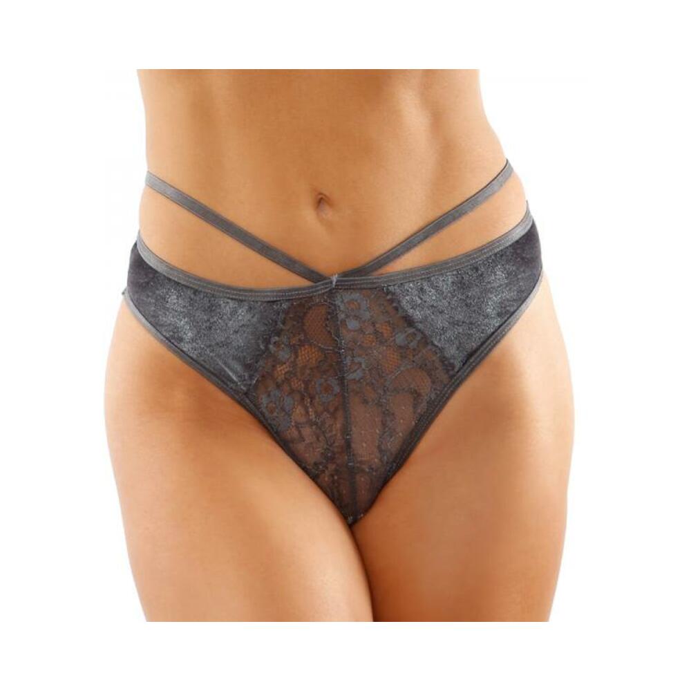 Kalina Velvet Strappy Cut-out Thong With Keyhole Back Gray L/xl