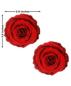 Neva Enchanting red rose Nipztix Pasties. Made with luxurious glitter velvet. Each pack includes 2 Nipztix. Sizing 2.6 inches by 2.6 inches. Wear Nipztix for evenings out, with daring dresses or to spice up those intimate situations.