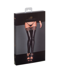 Seductive stockings Siliconed lace finishing for perfect hold Material: Powerwetlook Size XL: bust 98-101 cm, waist 77-80 cm, hips 104-107 cm