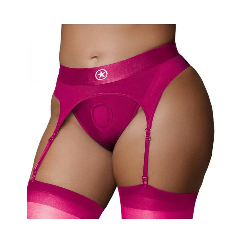 Ouch! Vibrating Strap-on Thong With Adjustable Garters Pink Xl/xxl