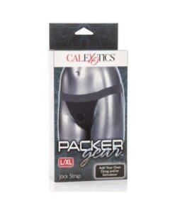 Packer Gear Jock Strap L/XL from Cal Exotics. Thoughtfully architect for mutual pleasure. Make more of your intimate moments. A perfect fit is all yours with this stretchy and comfortable delight. As simple to clean as it is easy to use, you will find cleaning a snap. Bulk weight 2.5 ounces. Materials Cotton, Spandex, Polyester, Nylon. Warranty information order with confidence as this item comes with our standard 90 day warranty.