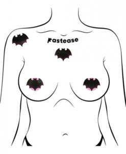Pastease Small Liquid Bats. Petites: Two Pairs Small Liquid Black Bat Nipple Pasties by Pastease. Dimensions: 2 inches by 1.5 inches. Coverage Diameter: 1 inch. Unveiling the Petite Bat Pastease – a captivating accessory that brings a touch of dark elegance to your Halloween ensembles and gothic chic style. Embrace the allure of the night with four petite bats to accessorize your look, accentuate your style or wear as pasties. Featuring a shiny, liquid black finish, perfectly crafted to set your look apart from the rest. Key features: Petite Bat Design: Four intricately crafted petite bats lend an enchanting and bewitching vibe to your style, ideal for Halloween celebrations and gothic chic looks. Shiny Liquid Black Textile. The glossy, liquid like black fabric exudes an air of sophistication, adding a mysterious shimmer to your ensemble. Comfortable and secure. The Pastease are designed to offer a snug and comfortable fit, ensuring they stay in place all day or all night long. For those who revel in the mystique of Halloween or embrace the gothic aesthetics year round, the Petite Bat Pastease are an absolute must have. These mesmerizing bat designs exude an aura of sophistication and fascination, allowing you to express your individuality with a touch of enigmatic charm. Made from premium materials, the shiny liquid black textile creates a mesmerizing effect, reflecting the surrounding light to add a mysterious gleam to your outfit. The intricately detailed petite bats enhance the overall allure, making these Pastease a captivating accent to your look. The Petite Bat Pastease can be effortlessly paired with a wide range of outfits, from sultry Halloween costumes to gothic inspired fashion. Be it a night out on the town, a themed party, or an evening of indulging in the mystical, these Pastease are the ultimate finishing touch to enhance your allure. Make a bold statement this Halloween or any time you feel like embracing your inner gothic vibe. Step into the shadows and embrace the magic of the night with these extraordinary Pastease! Categories: Holiday item, Halloween items, Lingerie, Clothing, Sexy Costume Accessories, Pasties and Accessories. Restricted, Amazon Restricted. 2023.