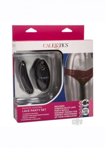 Remote control and rechargeable use alone or with a partner! Petite, curved, body forming stimulator fits comfortably into lace panty. Stretch-to-fit lace panty with discreet pocket for perfect stimulator placement. Machine washable lace panty. 12 intense functions of vibration, pulsation and escalation. Waterproof Silicone stimulator may be used independently of remote. State-of-the-art memory chip resumes on last function used. Easy push-button control hold for 3 seconds to turn on or off. Extended 32.75`/10 m range. RED certificate included. USB rechargeable (stimulator and remote) dual charging cord included. Complete charge in 1 hour. Runs for 40 minutes on high speed and 55 minutes on low speed.