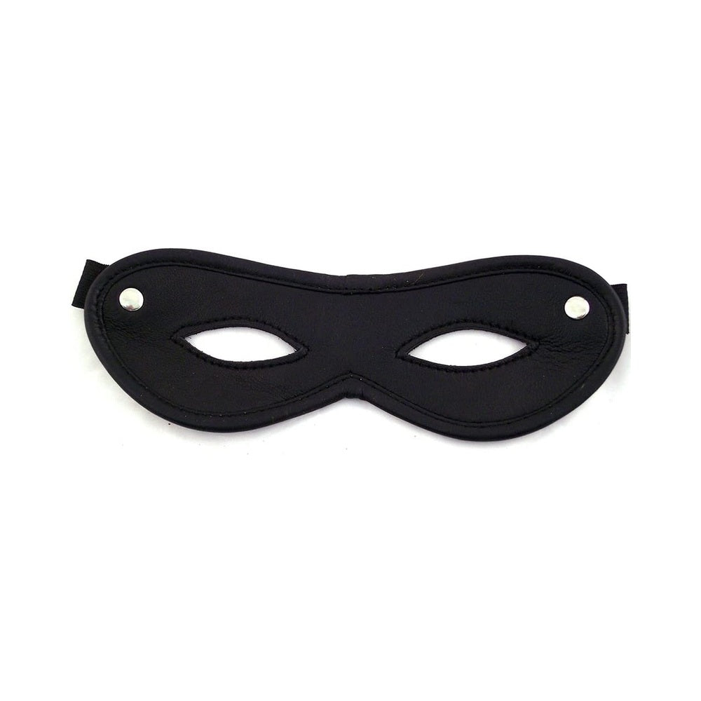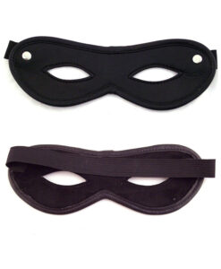 Leather eye cut mask features elastic strap to fit all sizes. Measures 7.9 in. by 2.75 in.
