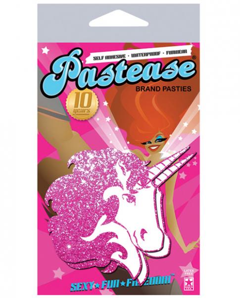 Hot Pink Glitter Unicorn Nipple Pasties are made of durable glitter material that forms to curves and resists wrinkling over hardening nipples. Just peel and stick on clean dry skin. Features latex free, medical grade, waterproof adhesive that stay securely in place until they are gently removed. 3.2 inches by 3 inches. Coverage of 2.1 inches.