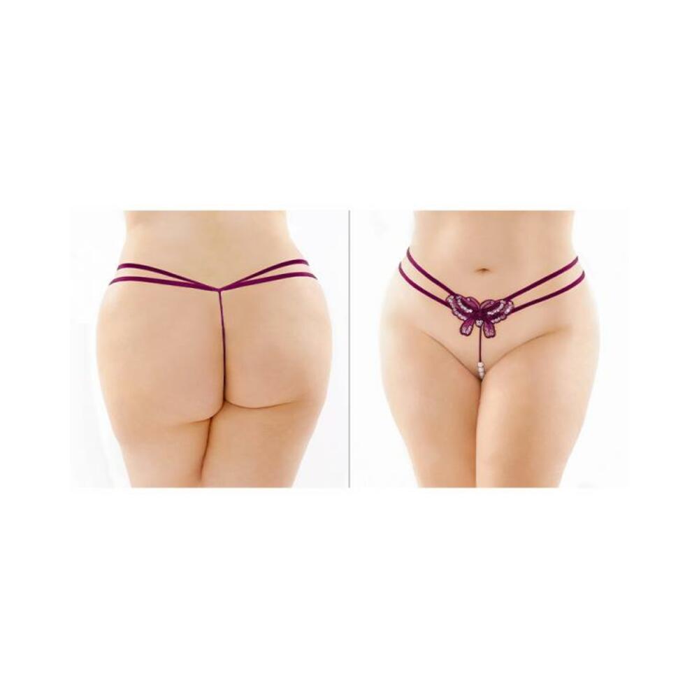 Sequin Butterfly Strappy Pearl G-String Brand: Bottoms Up Materials: 80% Nylon, 20% Spandex Color: Purple